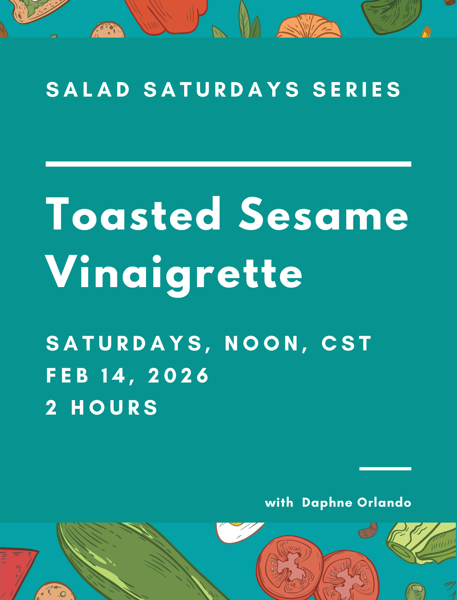 Join me for Salad Saturdays, a live, hands-on Zoom class where we make our salad together in real time. You’ll chop, mix, and toss right alongside me from your own kitchen.